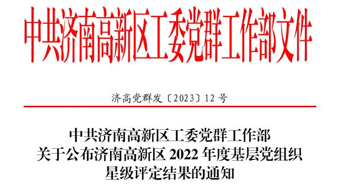 濟(jì)南國(guó)科醫(yī)工科技發(fā)展有限公司黨支部連續(xù)2年被評(píng)為濟(jì)南高新區(qū)“五星...
