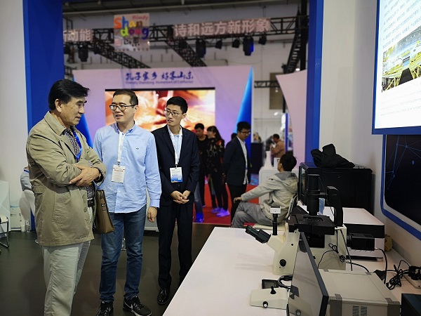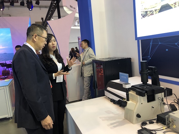 10月19日,以“創新激發動能,合作促進發展”為主題的2019新動能·青島展覽洽談會在青島舉行,濟南國科醫工,攜其獨立研發產業化的激光掃描共聚焦顯微鏡參展。在濟南新動能展區,濟南國科作為濟南高端制造業的代表展商之一,在展的共聚焦顯微鏡吸引了很多人的注意,政府領導,大學教授,企業高管,及其他參展人士,皆表現了對產品的興趣,共聚焦顯微鏡填補了我國在此領域的空白,海大王教授表示,要繼續努力推進高端光學器材的國產化,打破國外壟斷,并且表示出了跟我公司強烈的合作愿望,希望能夠攜手進行科研與項目的產品化工作。