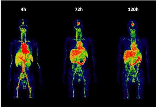 89Zr ABT-806 在注射后 4 小時(shí)、72 小時(shí)、120 小時(shí)圖像