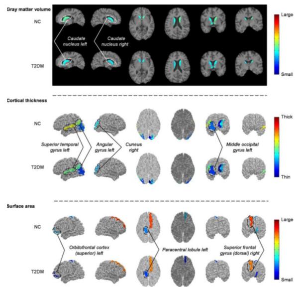 灰質(zhì)體積、皮層厚度和腦皮層表面積統(tǒng)計(jì)分析結(jié)果