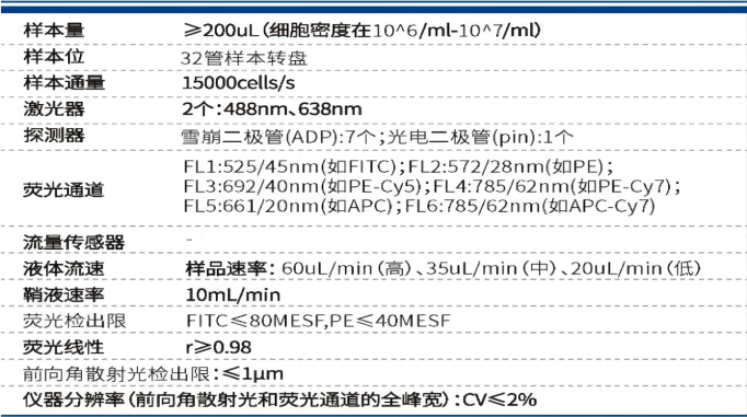 其中醫用雙激光流式細胞儀是一款雙激光六色流式細胞儀,可滿足市場上90%以上的使用需求。應用場景包括臨床診斷和科研市場,其中臨床市場主要包括:淋巴細胞分群,HLA-B27強直脊椎炎檢查,白血病分型,干細胞計數,DNA周期及倍體分析,CD4絕對計數和細胞移植交叉配型等;科研市場主要包括:細胞大小、粒度、表面積分析和核漿比例,DNA、RNA、蛋白質含量,染色體分析,細胞表面/胞漿/核的特異性抗原,細胞酶活性,細胞受體和凋亡等。適用于醫院檢驗科、生物醫學實驗室等應用場景。