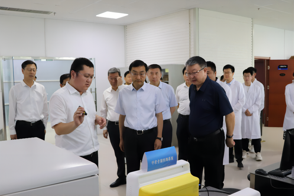 劉強一行在濟南國科展廳聽取了姜琛昱董事長關于公司建設、核心技術攻關及科研成果轉化情況的匯報,并詳細了解濟南國科在顯微裝備、體外診斷儀器及試劑方面取得的成果。